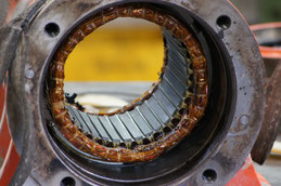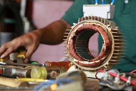 Egal ob Gleichstrom- oder Drehstrommotor - ist die Wicklung defekt, so kann diese von uns neu angefertigt werden. Zuerst wird die vorhandene Wicklung abgerissen und so vorbereitet, damit die neue eingelegt werden kann. Die Spulen werden auf präzisen Wickelmaschinen gefertigt und danach von Hand eingelegt und geformt. Um besseren Schutz zu gewährleisten wird die Wicklung in Schutzharz vergossen und gehärtet.